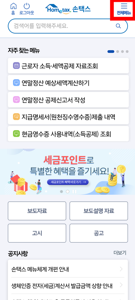 홈택스 홈페이지 (현금영수증 발급 꿀팁)