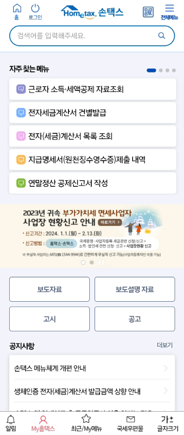 홈택스 홈페이지 바로가기